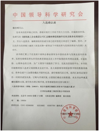 同時,財務結算部經(jīng)理楊全明同志撰寫的“建筑施工企業(yè)集團公司匯總繳納增值稅操作實務及賬務處理規(guī)范”一文成功入編中國領導科學研究會《求是先鋒-新常態(tài)下中國改革與發(fā)展的理論與實踐》叢書。該文章結合建筑施工企業(yè)匯總繳納增值稅的相關政策,針對集團公司法人單位與分公司、項目部相關進項、銷項發(fā)票操作實務管理及賬務處理進行了分析與探討,同時結合集團公司實際情況,符合新形勢下營改增政策,具有行業(yè)針對性、時效性、可操作性強。